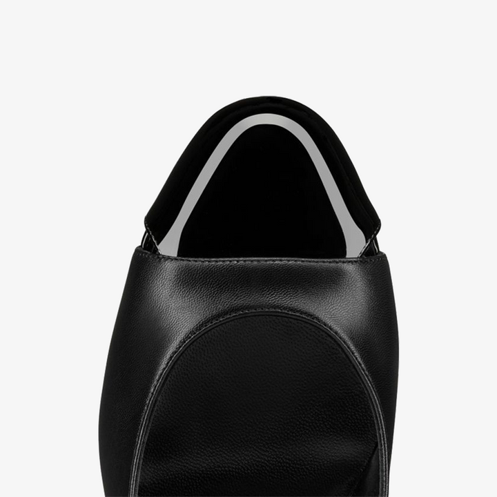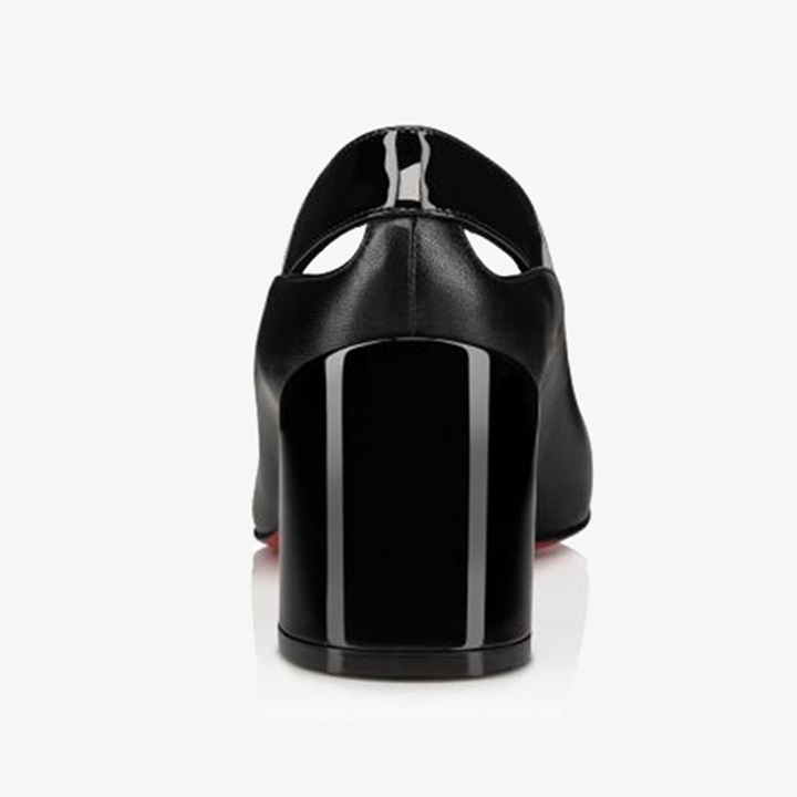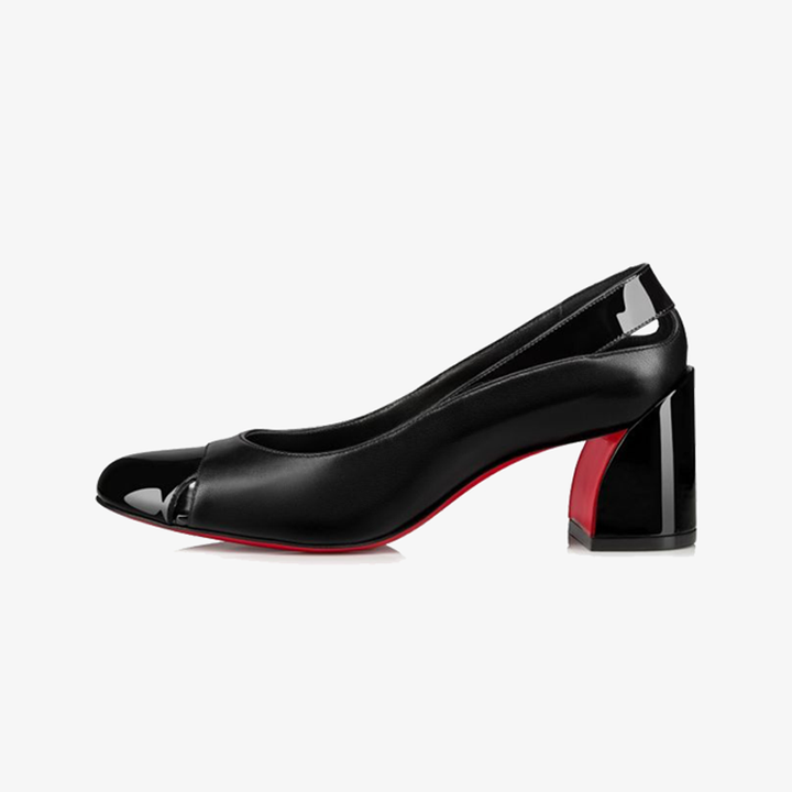 This model is a sleek reinterpretation of the classic pump, featuring a cute round toe. Meticulously crafted in decadent black patent leather, it sits on a chunky 55mm heel with sculpted curves. Its voluptuous lines offer a perfect blend of contemporary style with a retro-inspired touch.